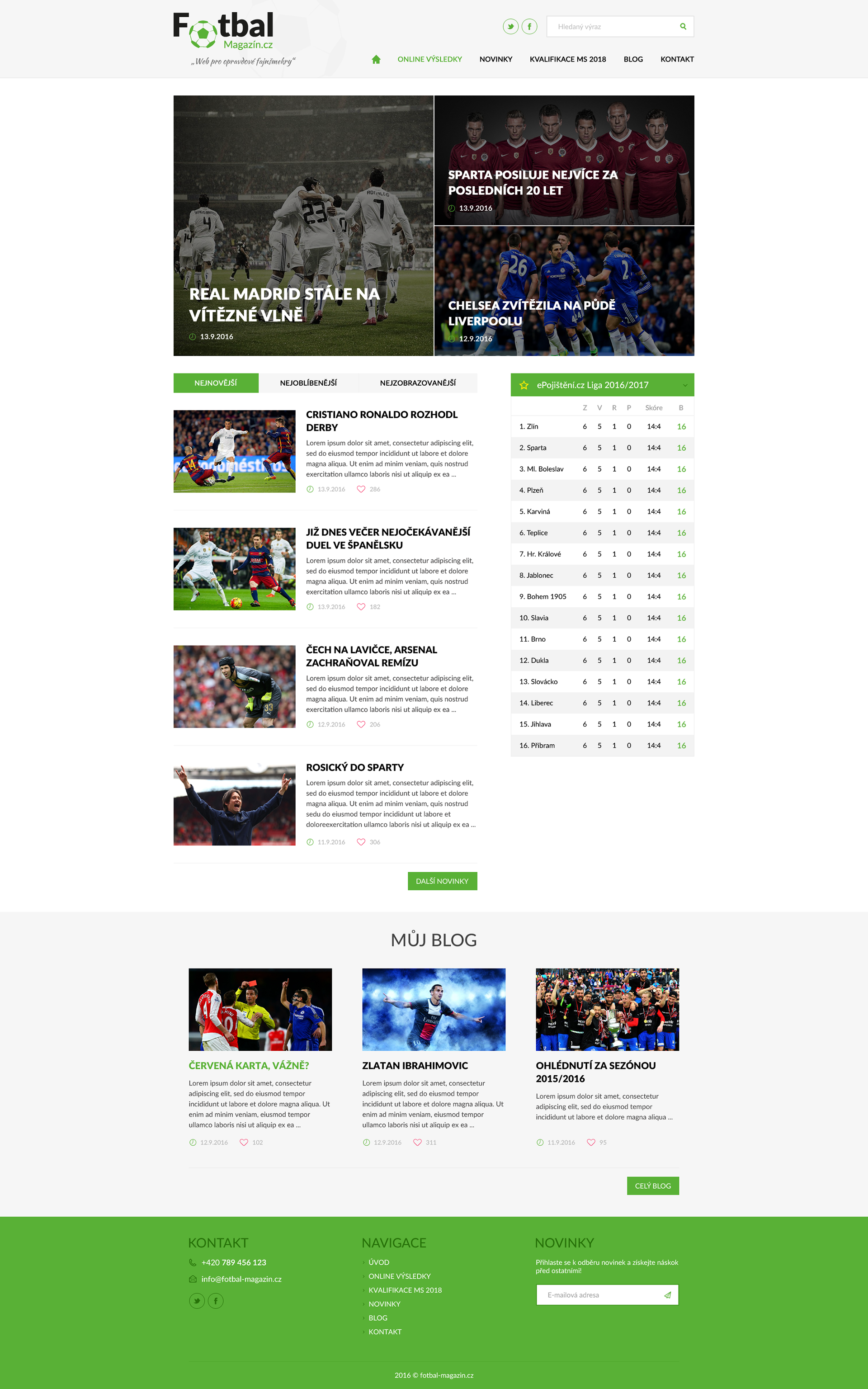 Webdesign for fotbal-magazin